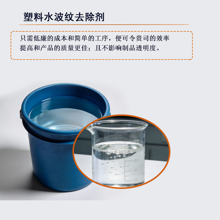 不影响制品透明度的前提下,能有效地解决塑料银纹、流纹、水气、气泡、塑料表面料花和花面等制品缺陷。添加去纹剂只需低廉的成本和简单的工序,便可令贵司的效率提高和产品的质量更佳。
